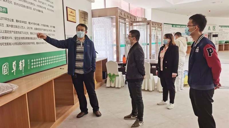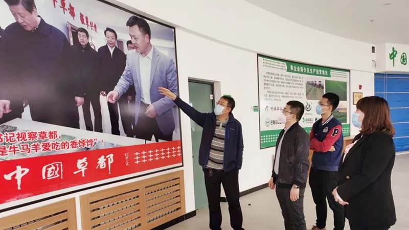 參觀過程中,劉建波為顏憲斌一行介紹了草都的業務模式,及草都集團各基地運營情況。主要介紹了草都云平臺、大數據平臺、牧草追溯平臺等牧草科技平臺的建設和運營情況。