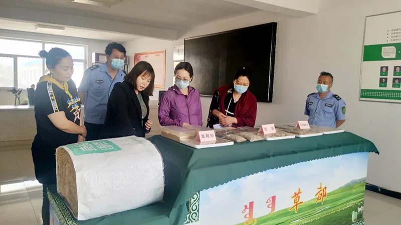近日,錫林郭勒盟農牧局副局長烏云其木格、錫林郭勒盟飼草飼料科科長孟慶文、錫林浩特市農科局副局長秀芝、錫林浩特市執法大隊副隊長照日格圖一行蒞臨草都錫盟基地進行調研。通過對草都飼草產品查看、易牧連鎖超市實地調研等,了解了草都錫盟基地和阿旗基地兩大基地牧草銀行的運營和儲草情況,針對牧草銀行建立以來對農牧民的服務和帶動作用,給予了肯定。