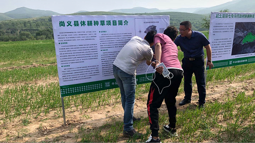▲ 市人大常委會領導視察尚義縣紅土梁鎮七令溝村休耕還草1、2號地