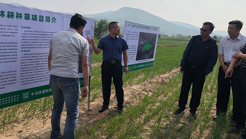 視察團領導一行人參觀了尚義縣紅土梁鎮七令溝村休耕還草1、2號地,詳細了解了燕麥、苜蓿的混種生長情況。1、2號地實施方案是燕麥苜蓿混種,目前燕麥出土20-30公分,苜蓿5-8公分,長勢喜人,收到領導一致認可。各位領導對尚義縣休耕還草項目的實施情況給予了肯定,同時也要求基地再接再厲,做出更好成績。