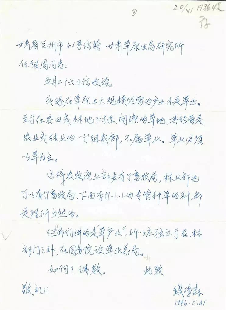 從1979年開始,對照我過去所見、所思,用系統科學的思維審視草原科學,視野大開。從此,我就專做《草地農業生態系統》,即“草業”的教學和研究。正苦于“草地農業生態系統”邁不出校園,且觸及“以糧為綱”的國策,我躑躅再三,想等待社會上有些發展時再推向社會。恰在這時,我收到錢學森先生的一封信,他1984年已在內蒙古講草產業、沙產業。來信征求我對“草產業”的意見。他以戰略家的眼光,提出“草產業”,突破了我的“草地農業生態系統”的校園藩籬,進入社會生產領域,我當然熱烈支持。1985年,農業經濟學會與草原學會聯合在民族文化宮召開了一次小型座談會。參加人有錢學森、鄧力群、許立新、石山等高層理論家。恰好錢老與我鄰座,他問我:“林業,我算了一下有16個產業部門,草業有多少個?”當時草業剛剛萌芽,我無法回答。我說回去考慮。過了一段時間,作為給錢老的回答,我寫了草業四個生產層(前植物生產、植物生產、動物生產、后生物生產)和系統耦合兩篇論文,送他看了。他回信說“您的兩篇文章寫得很好。把草業的外圍社會和生態環境都講透了。您也引入了系統概念和信息概念。它們是相輔相成的,一切大規模的活動都離不開系統和信息”①。這就是三個因子群、三個界面、四個生產層的草業科學框架雛形。教育部1998年壓縮全國專業目錄近一半,草原科學不但沒有被刪除,反而因有了“草業”的內容,由草原科學提升了一級,成為與農、林、牧并列的草業科學,即草地農業科學。
