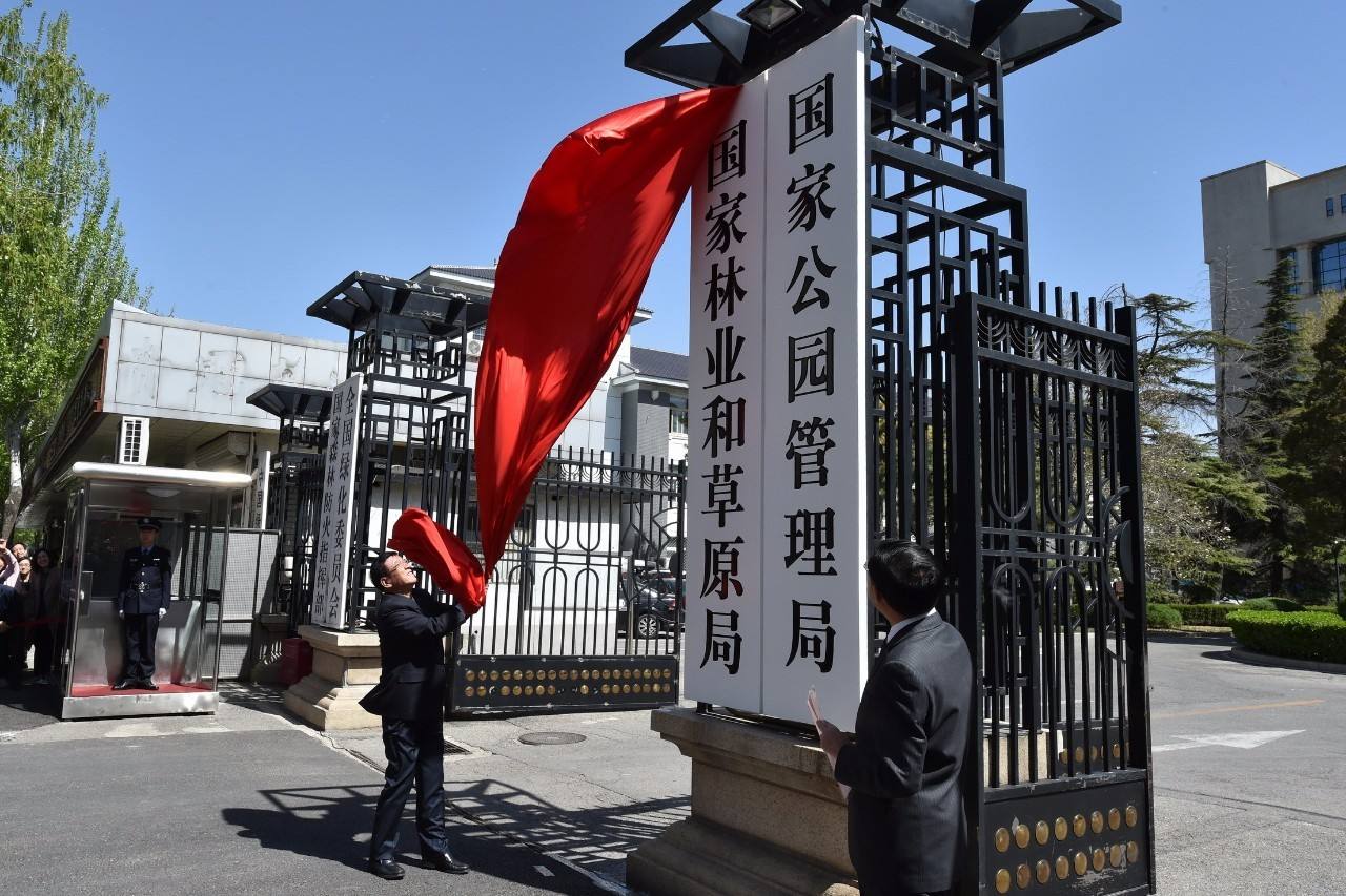 ▲ 國家林業和草原局、國家公園管理局舉行揭牌儀式