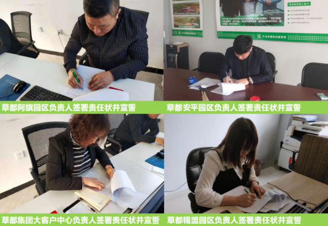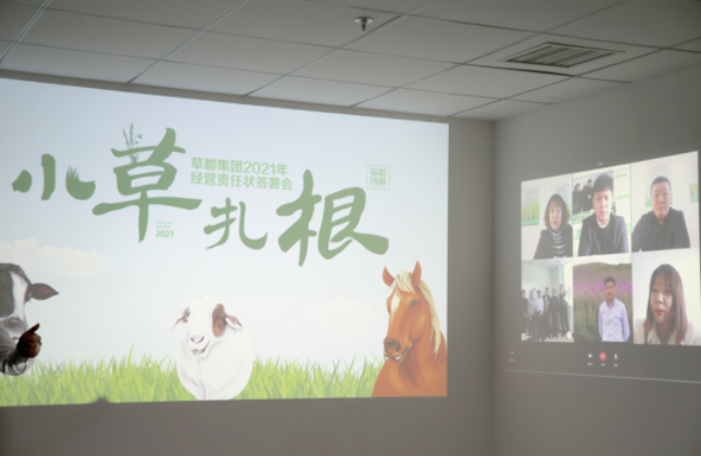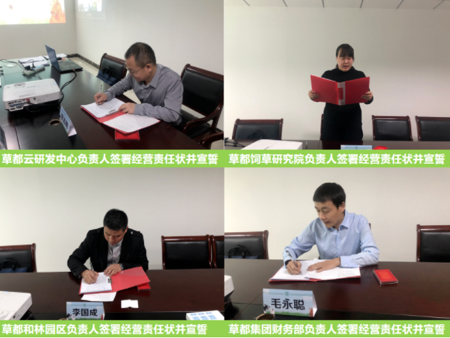 2月4日,草都集團舉行2021年經營責任狀簽署會,草都集團董事長李國才;草都集團黨支部書記、飼草研究院院長趙和平;草都集團執行總裁林海亮;財務總監毛永聰;和林園區總經理李國成出席會議。