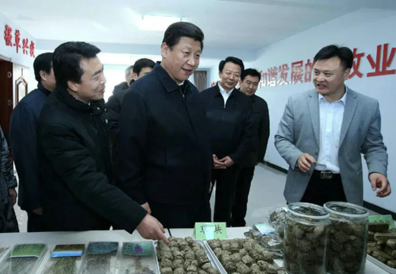 ▲2014年1月27日,習近平在毛登牧場飼草產業基地 新華社圖