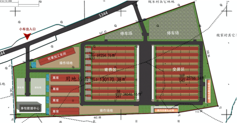 尚義縣草畜一體化服務園區,占地面積195.26畝,主要包括羊交易區、羊寄養區、服務區;牧草收儲區、交易區;飼草料加工及配送中心,園區建成后牧草收儲年交易量牧草10萬噸,倉儲牧草6萬噸及配送、肉羊寄養養殖年交易量18萬頭、農作物秸稈加工及牛馬羊中央廚房年生產能力2萬噸。
