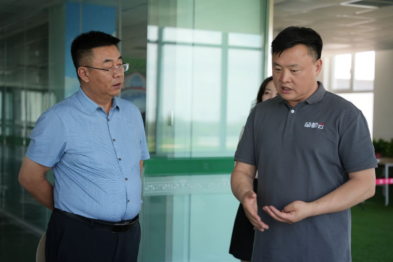 7月6日,鄂爾多斯市上海廟經濟開發區管委會副主任石君一行蒞臨草都和林格爾國家級草牧業園區參觀考察,內蒙古草都草牧業股份有限公司董事長李國才陪同。