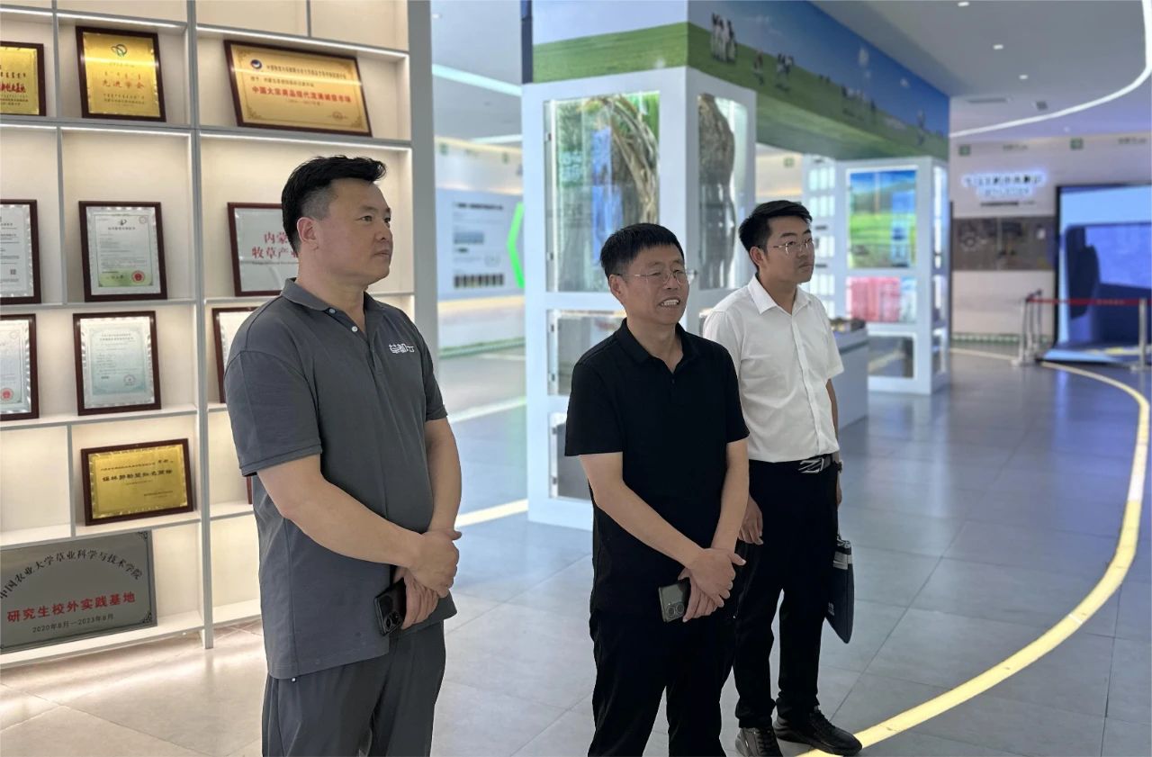 吳玉友總監先后參觀了草都和林格爾國家級草牧業園區集數據、科研、展覽于一體的多功能中心及生產區觀景臺,著重了解了草都集團產業構成及主營業務。草都集團董事長李國才就草都集團當前項目建設、產業發展、企業經營及草都未來發展方向和定位等情況進行了詳細地介紹。雙方深入交談,就行業未來發展趨勢及實現更多領域、更高水平的資源共享進行了溝通交流。