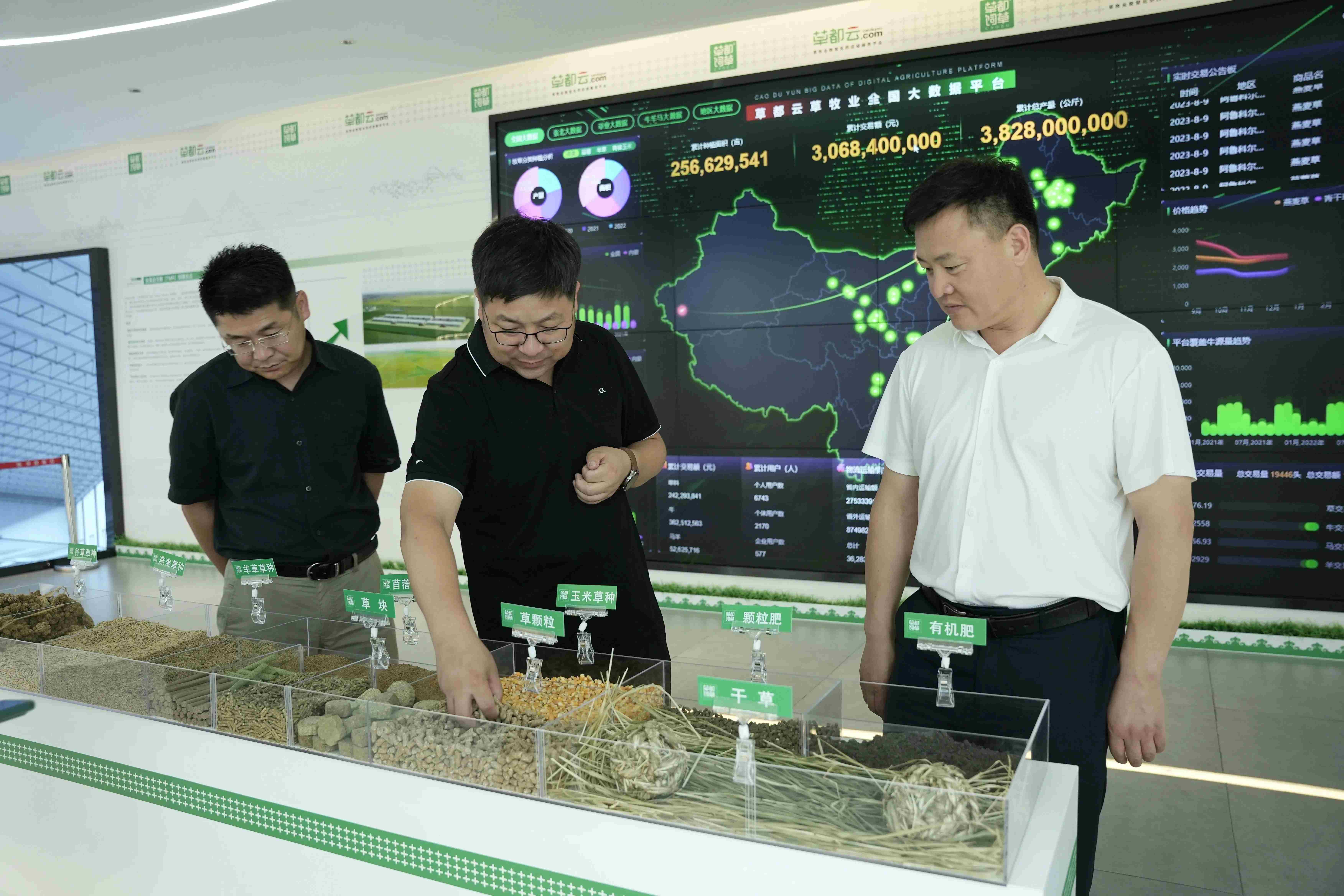 考察團先后參觀了草都和林格爾國家級草牧業園區集數據、科研、展覽于一體的多功能中心及生產區觀景臺,著重了解了草都集團產業布局及主營業務板塊。草都集團董事長李國才就蘇尼特右旗當前的草牧業發展情況,結合草都優勢,利用草都草種業、草收儲、草加工、草牧業園區及草都云五大核心能力進行了具體分析,并給出可行性方案。