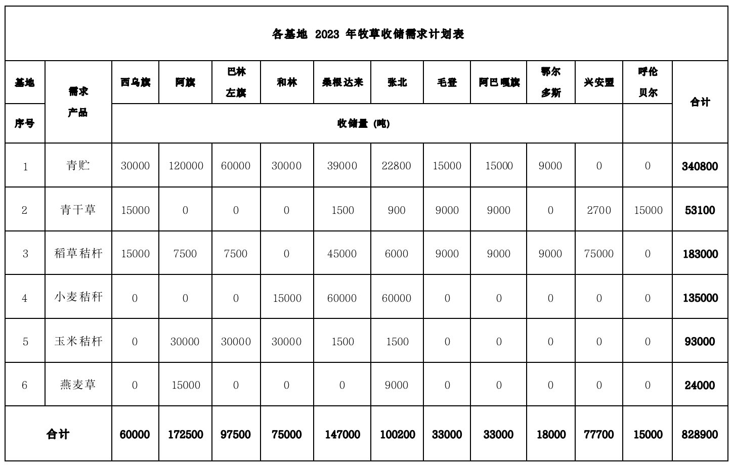 一、各基地 2023 年牧草收儲需求計(jì)劃表、收貨地址;