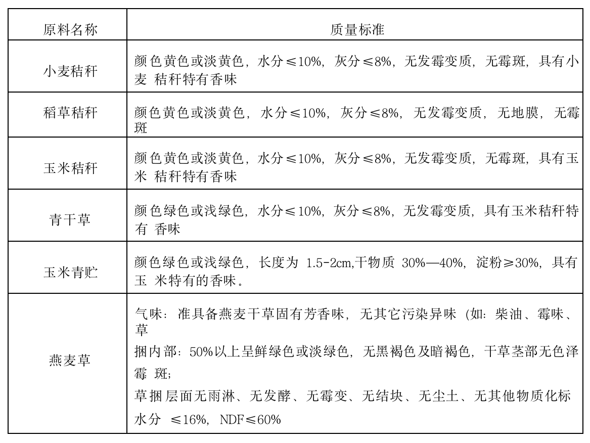 備注:阿旗、巴林左旗、桑根達(dá)來、張北基地和毛登基地、阿巴嘎旗、鄂爾多斯所需的稻草秸桿、小麥秸稈、玉米秸桿、和燕麥草需要經(jīng)過經(jīng)過除塵、揉絲等處理。