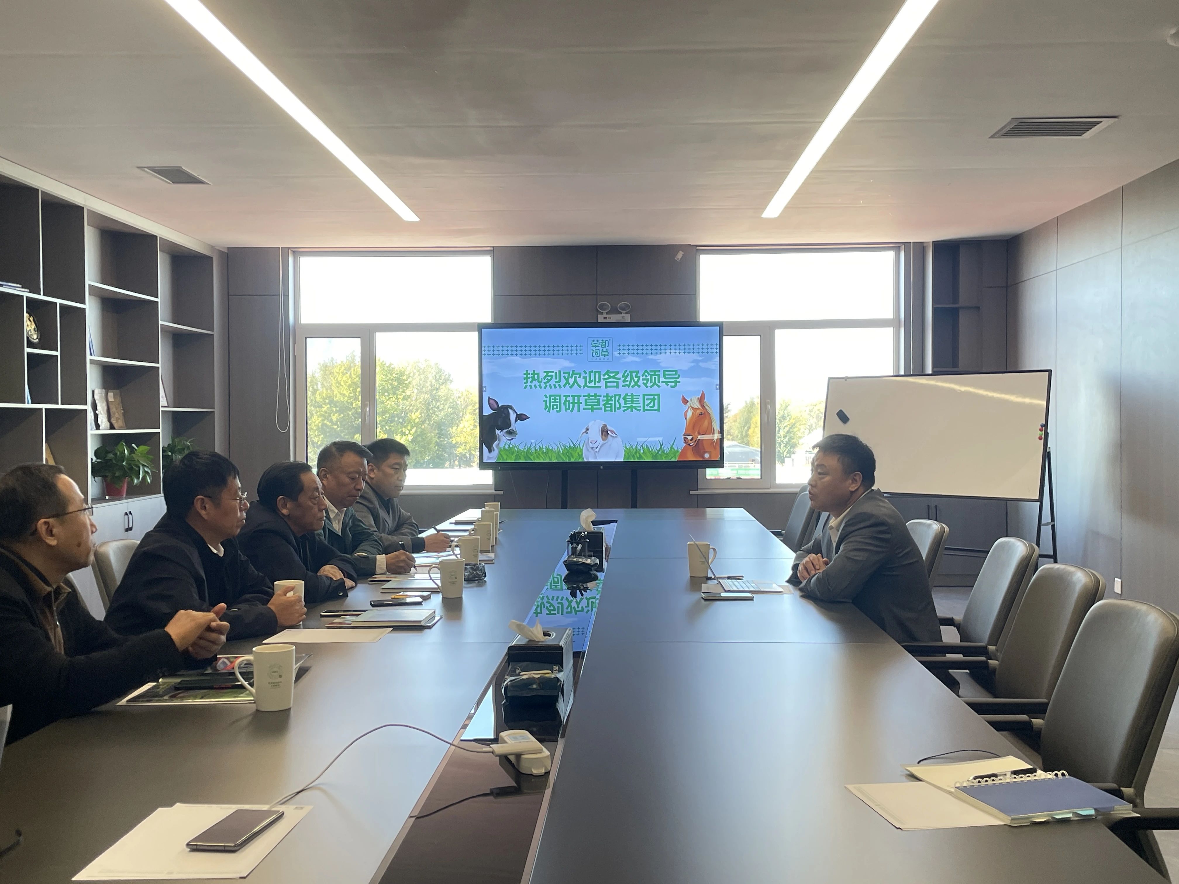 在參觀考察期間,來訪領導深入了解了草都集團的產業構成、產業能力、企業文化以及產品展示。董事長李國才根據當前草牧業發展環境,結合草都優勢,詳細說明了創新草牧業發展對于加速地方經濟建設工作的重要性。強調了草產業發展是保障糧食安全、食品安全和生態安全的“重器”,在我國“一二三”產發展進程中具有重要意義。