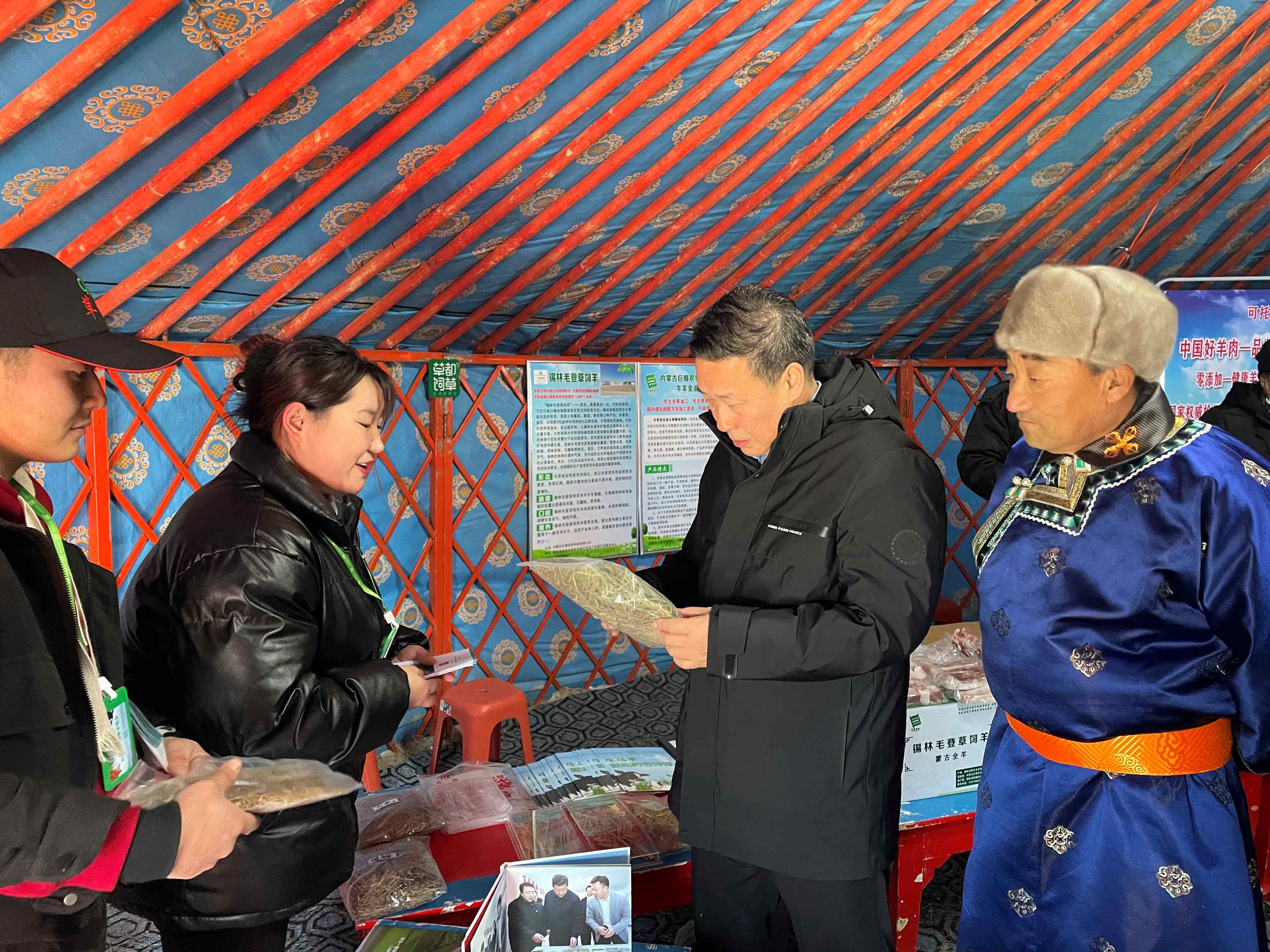 本次“超級聯賽”不僅有精彩的賽事和豐富的活動,更有內容豐富的“農副產品展銷會“。內蒙古草都草牧業股份有限公司作為本次“馬超聯賽”受邀企業之一,全方位多角度的展示草都全混合日糧,深受當地政府領導、牧民及網紅大v的關注。