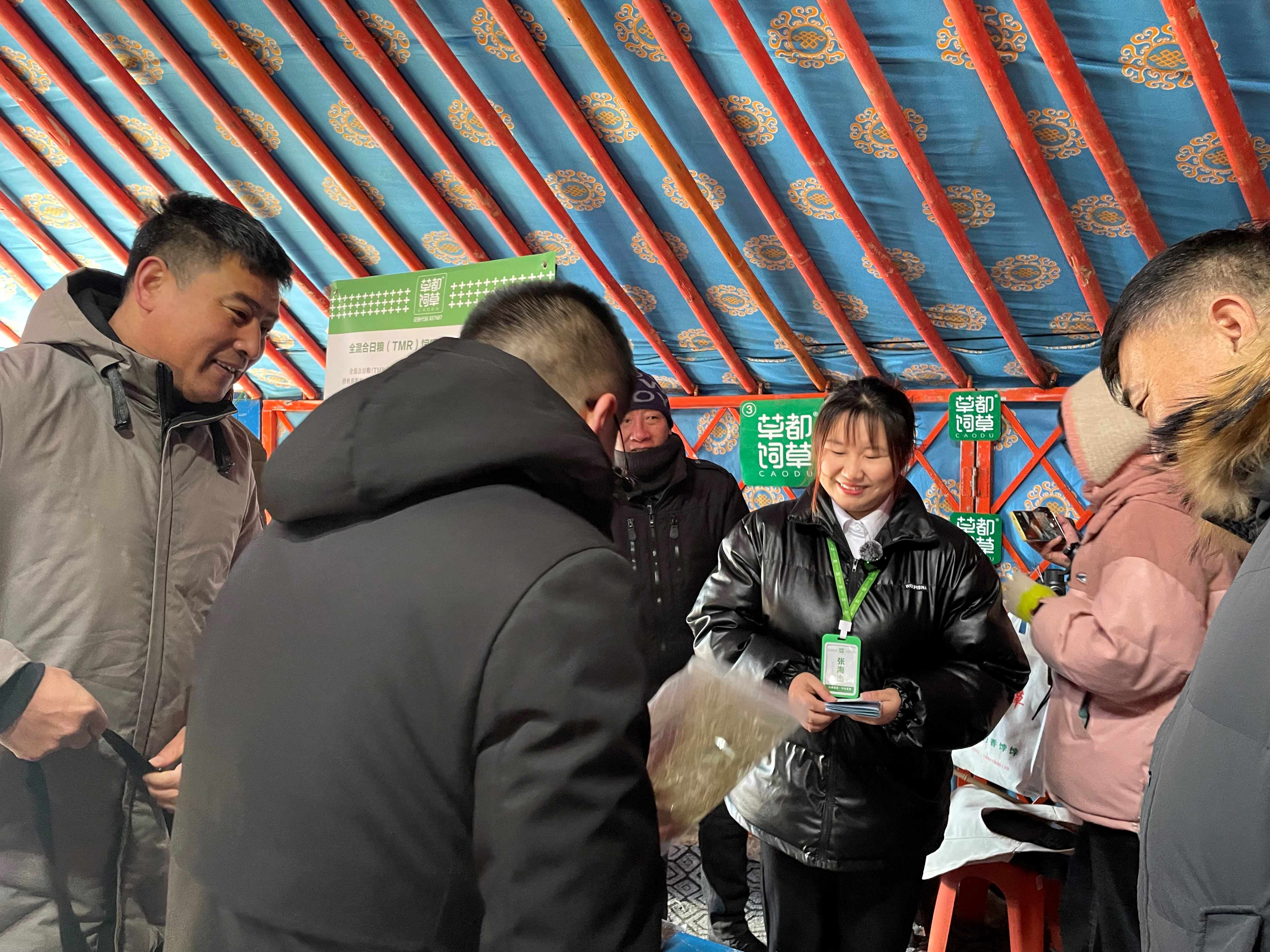 在現場,草都工作人員向大家詳細介紹了TMR(全混合日糧)產品的優勢,包括TMR產品的成分、使用方法、對牲畜生長及產值增長等多個方面。草都所生產的全混合日糧,能夠滿足牛馬羊在不同生長階段的營養需求、提高飼養效益和動物健康。
