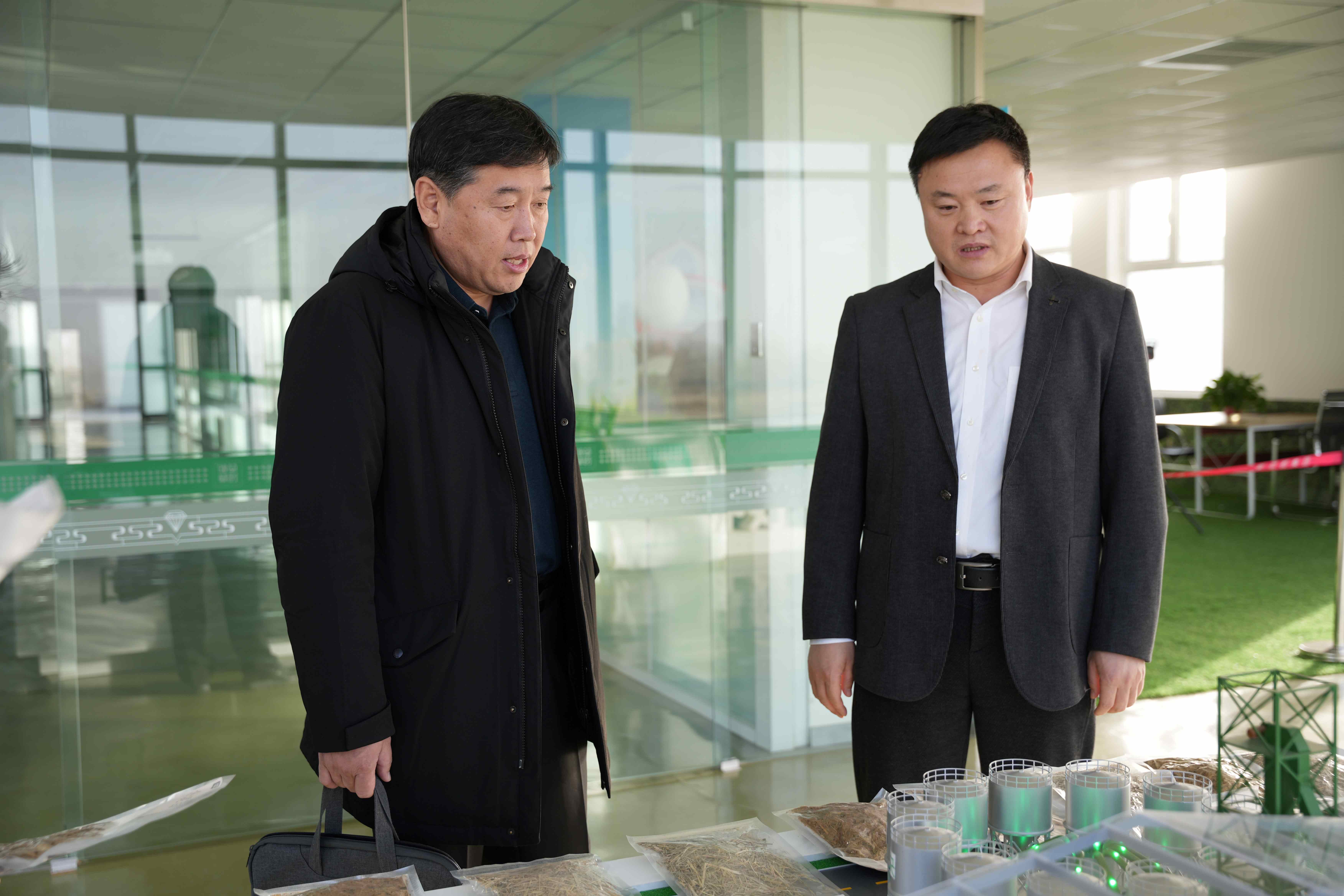 近日,興安盟農牧局黨組成員、副局長王玉泉一行蒞臨草都和林格爾國家級草牧業園區參觀座談。內蒙古草都草牧業股份有限公司董事長李國才陪同。
