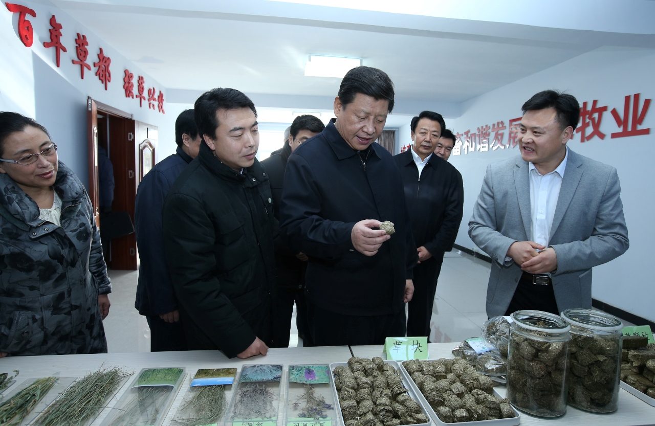 2014年1月27日,習近平總書記蒞臨草都視察,總書記對于牧草的生產、加工、收儲、交易情況十分關心,當了解到我們生產的牧草既有營養牲畜又愛吃,總書記稱贊道:“這可是牛馬羊愛吃的香餑餑啊!”,臨行前總書記囑咐我們:“你們扎根在草原,立草為業,帶動農牧民增收致富,這是利國利民的好事業,做的很好,要好好發展”。