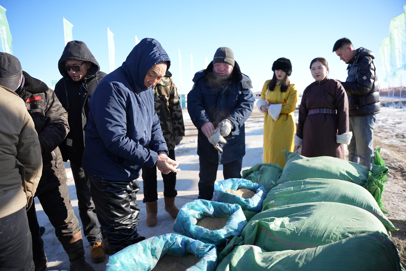 “我們今年養牛不掙錢,想過來看看,介紹說是能幫我們養的時候少花錢,還給介紹南方屠宰場免去中間環節直接收購。”12月8日上午,54歲的牧民巴特爾和同為附近養殖戶的侄子來到草都桑根達來園區,在領取了現場免費發放的FTMR全混合日糧試用裝飼料后,他和其他趕到現場的三百余名農牧民被“保底回購+幫養幫賣”的開園優惠活動吸引,認真聽取了現場工作人員用蒙漢雙語做的活動介紹。