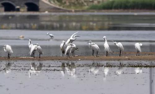 初冬的滹沱河,蘆葦漸漸枯萎,但一群群鳥兒飛過,讓滹沱河生機盎然。