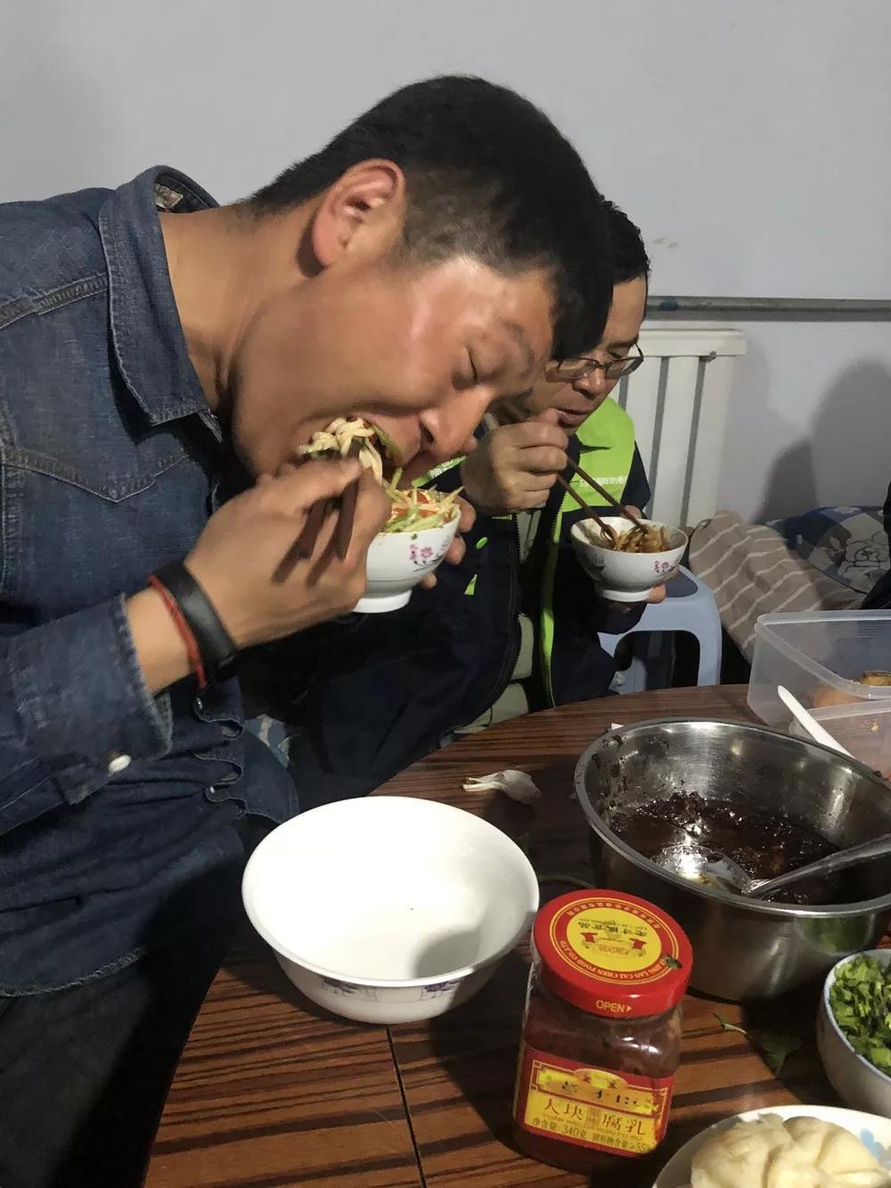 ▲忙碌了一天的安平草都團隊,一碗炸醬面吃起來也格外香