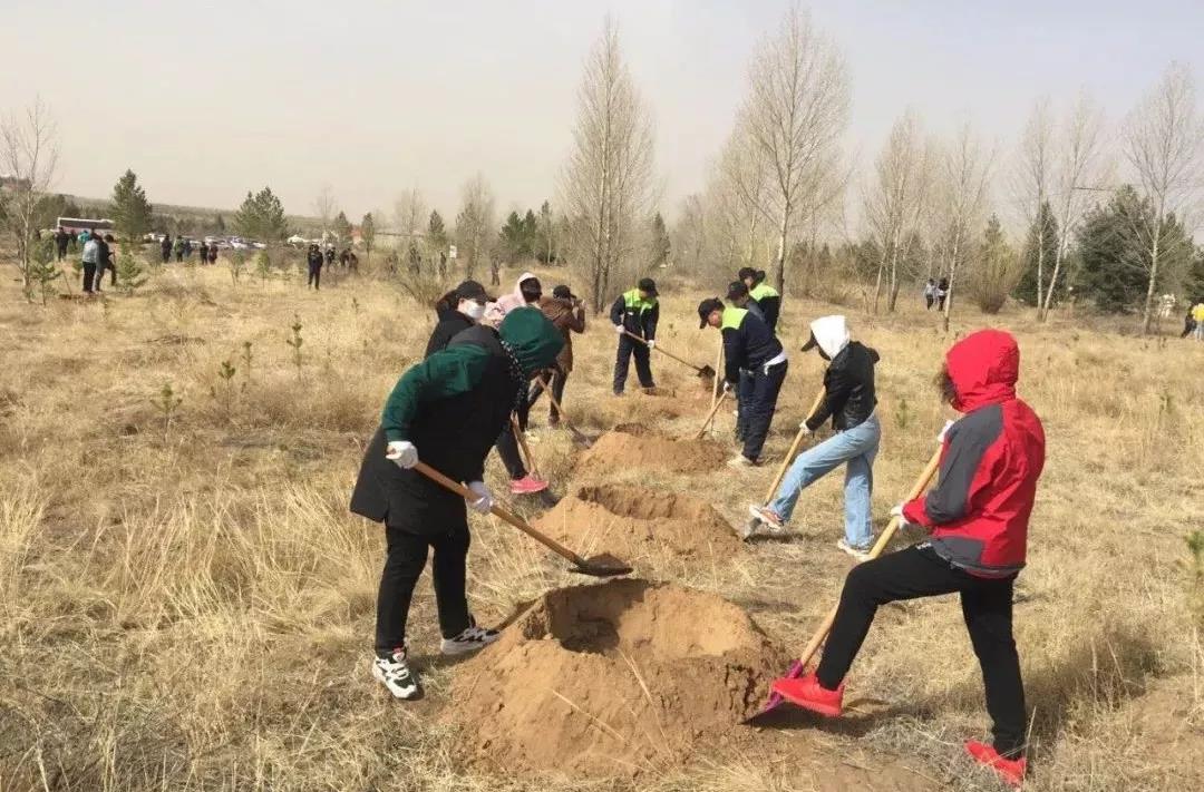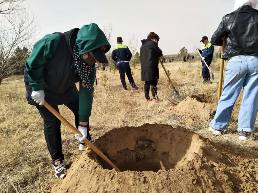 4月的錫林郭勒乍暖還寒,植樹活動的參與者在大風中揮動鐵鍬,干勁十足,鏟土、放苗、回填、澆水,分工合作、齊心協力,每道工序都認真完成,忙碌的身影和勞動的歡笑聲,形成了一道獨特亮麗的風景線。