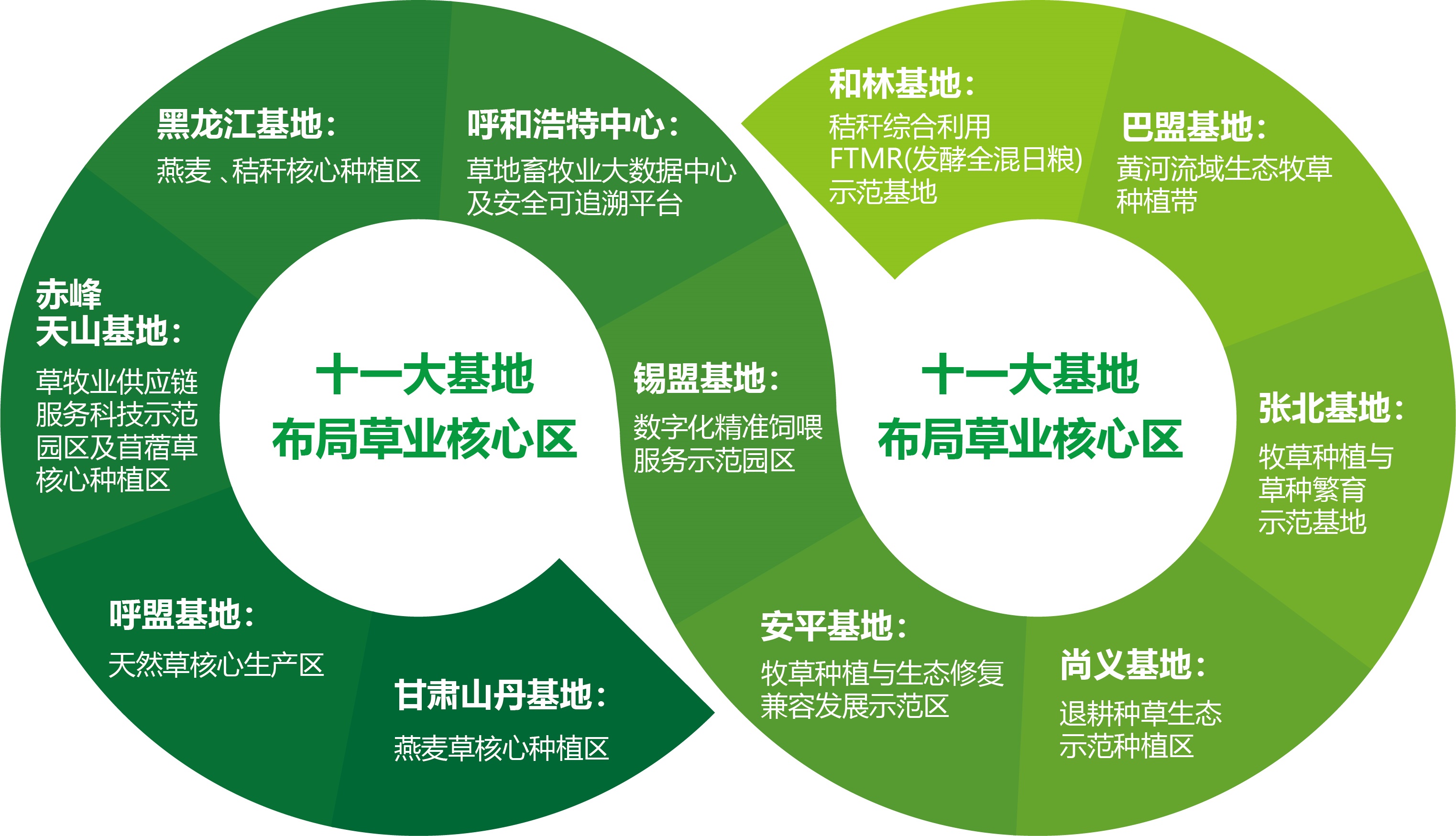 ——園區提效,打造草畜一體化產業鏈 以草牧業園區建設為契機,推動草畜一體化高質量發展,現已在 4 個省市 11 個 縣域布局草種基地和草牧業園區,正在建設和運營的草牧業園區有 6 個,分別在呼和浩特和林格爾縣、赤峰阿魯科爾沁旗、張家口張北縣和尚義縣、錫盟毛登牧場。未來,草都將依托草種繁育、基地建設、飼草料供給保障、生態保護修復的引領能力;草牧業園區系統運營、核心技術集成創新的科技能力;草牧業數智化供應鏈平臺的服務能力;讓牛馬羊吃的更健康,讓農牧民過的更幸福,構建更加健康、安全和便利的草牧業生態圈。