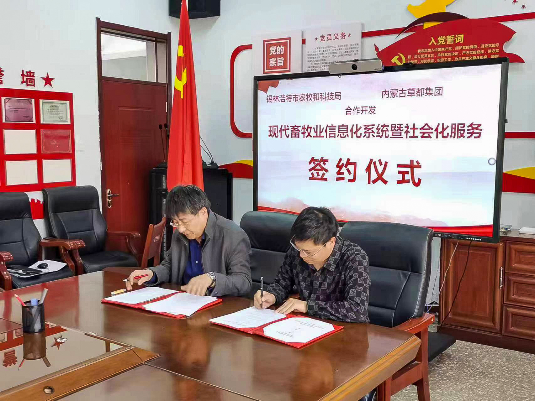 4月13日,草都集團與錫林浩特市農牧和科技局為合作開發現代畜牧業信息化系統暨社會化服務,正式簽署戰略合作協議